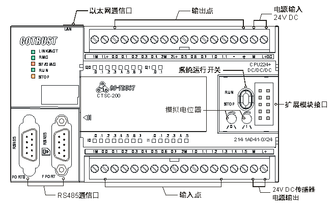 CTSC-200 CPU224I, 24VDC電源,14點(diǎn)24V DC輸入/10點(diǎn)繼電器輸出,16KB程序,108KB數(shù)據(jù),1個(gè)PPI,1個(gè)自由口,1個(gè)以太網(wǎng)口(Pulse/Dir或PTO/PWM) | CTS7 214-1AD41-0X24 |