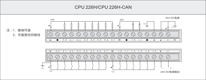 3、 此CPU數(shù)字量輸出點需外部負載需共陽接線(普通晶體管型CPU是外部負載共陰接線)。