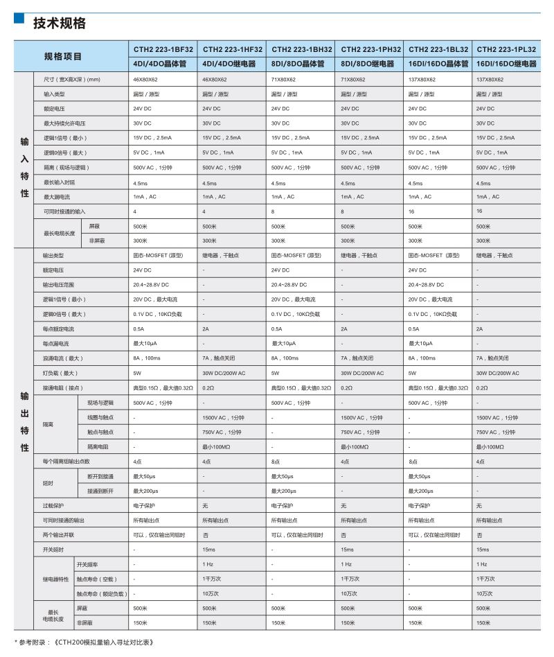 數(shù)字量輸入/輸出模塊, 16點(diǎn)24VDC輸入,16點(diǎn)晶體管輸出, 24VDC,0.5A(輸出保護(hù)) | CTH2 223-1BL32 |