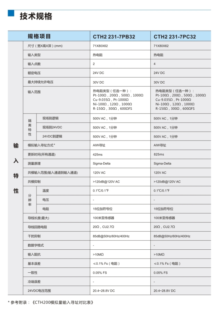 熱電阻溫度輸入模塊,4點RTD,隔離型16位精度CTH2 231-7PC32