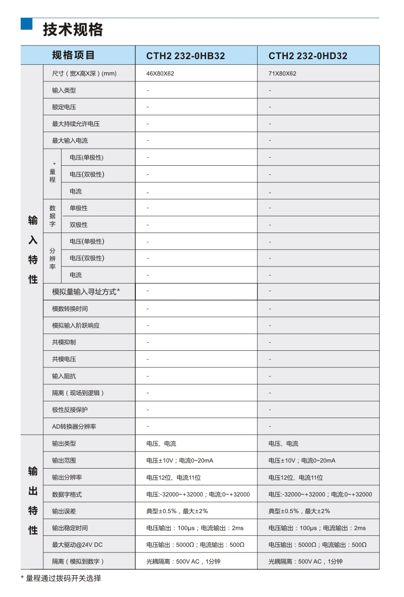 SM 232 模擬量輸出模塊 模擬量輸出模塊,4點,±10V電壓或0~20mA電流輸出,隔離型電壓12位精度或電流11位精度 CTH2 232-0HD32