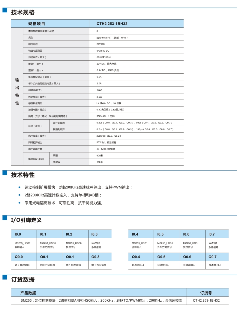 您當前的位置:首頁>產(chǎn)品展示>可編程控制器 >CTH200系列小型以太網(wǎng)PLC>SM253 定位控制模塊(253-1BH32)