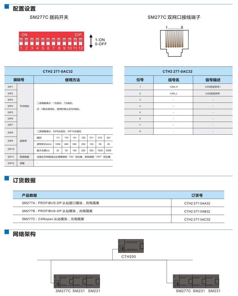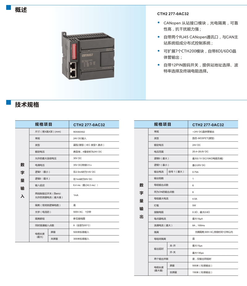 CAN從站模塊,自帶8DI/6DO,光電隔離 | CTH2 277-0AC32 |