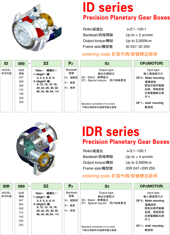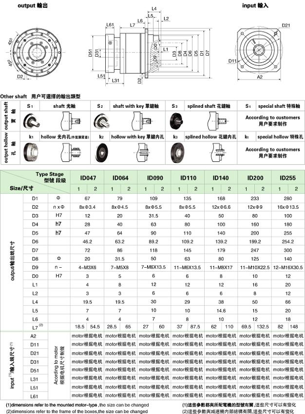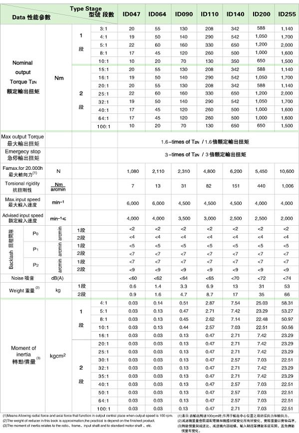 ID 系列精密行星減速機技術(shù)參數(shù)