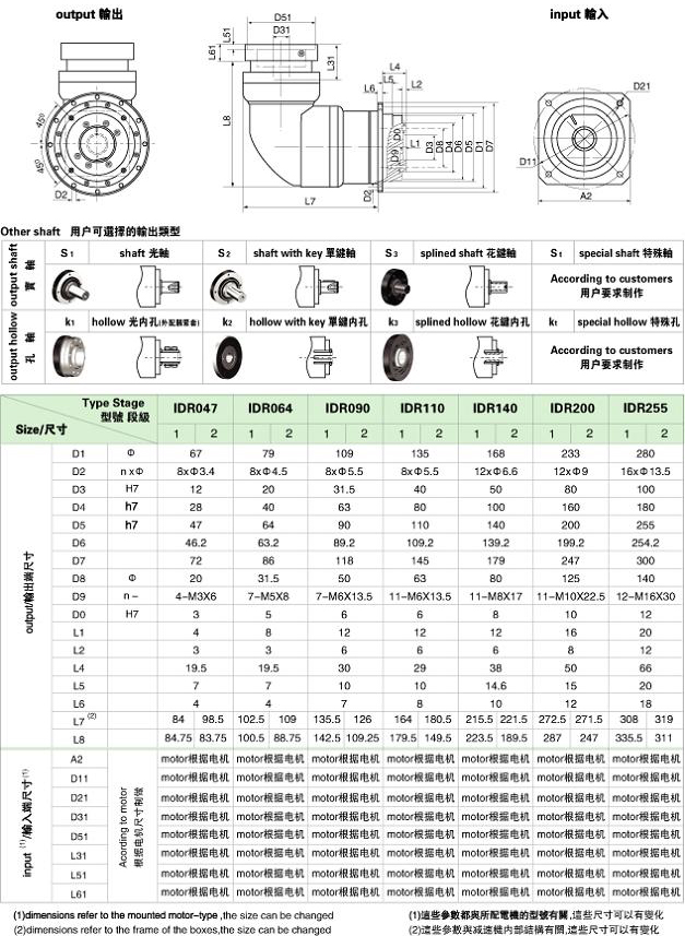 IDR 系列精密行星減速機技術(shù)參數(shù)