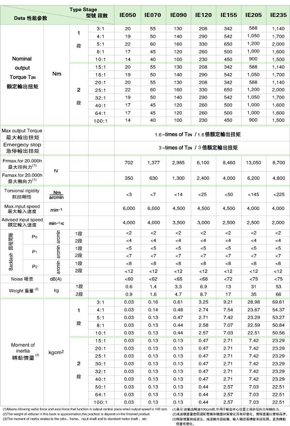 IB 系列精密行星減速機技術(shù)參數(shù)