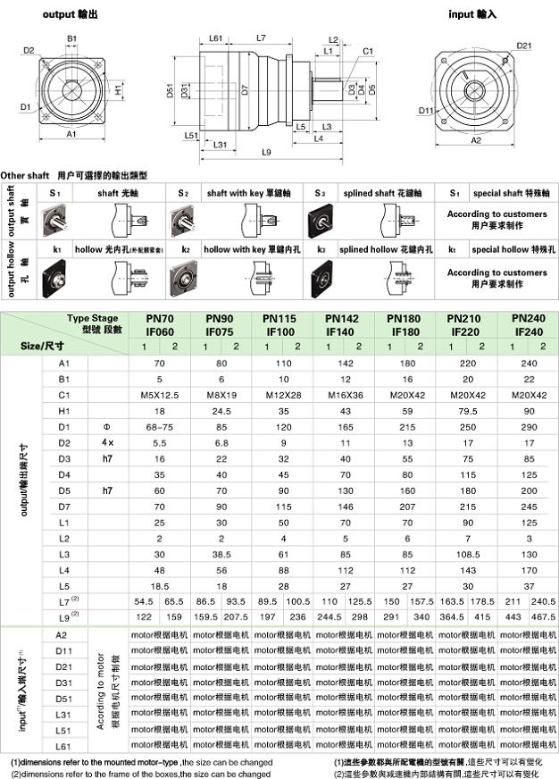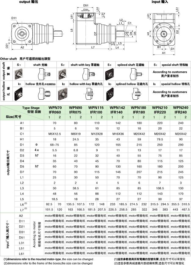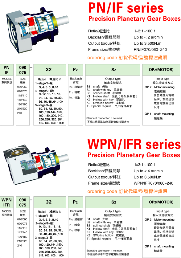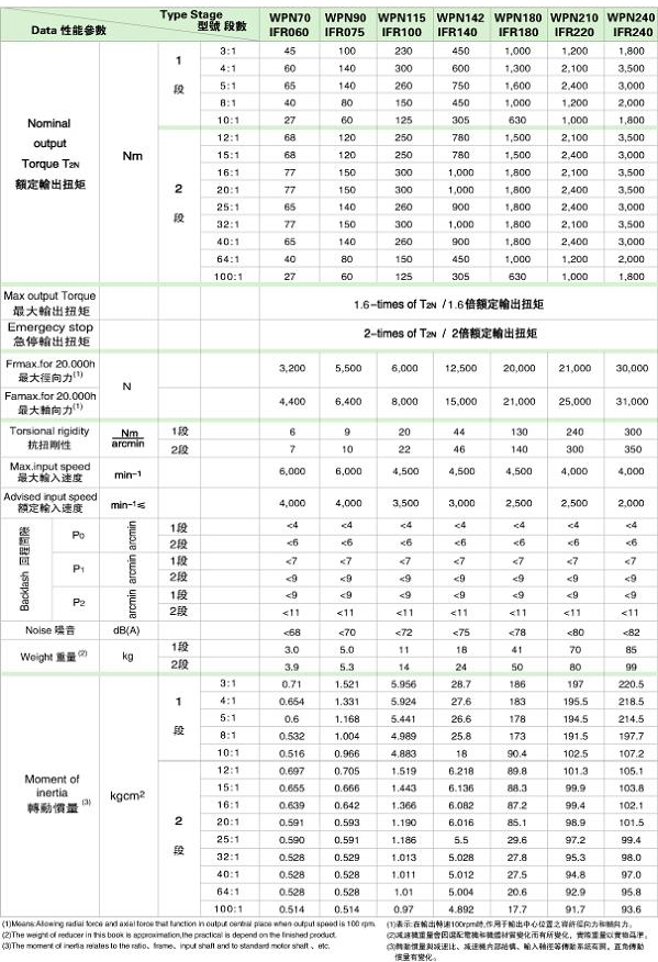 PN(IF)/WPN(IFR)系列精密行星減速機(jī)技術(shù)參數(shù)