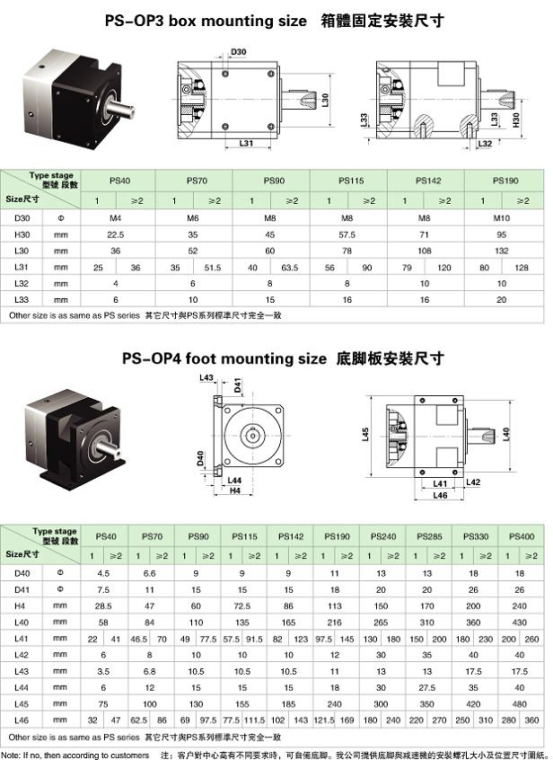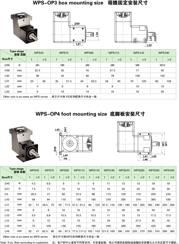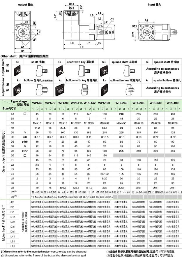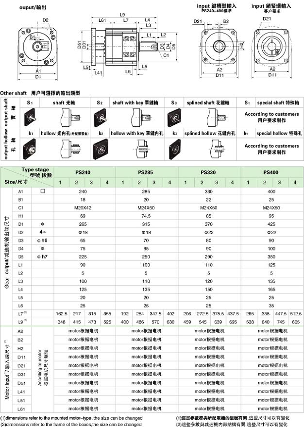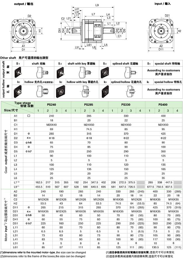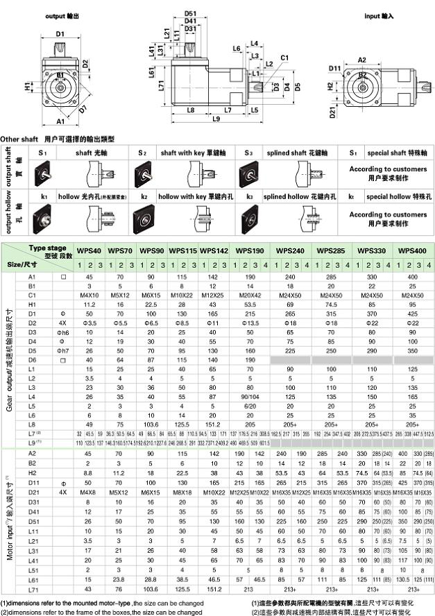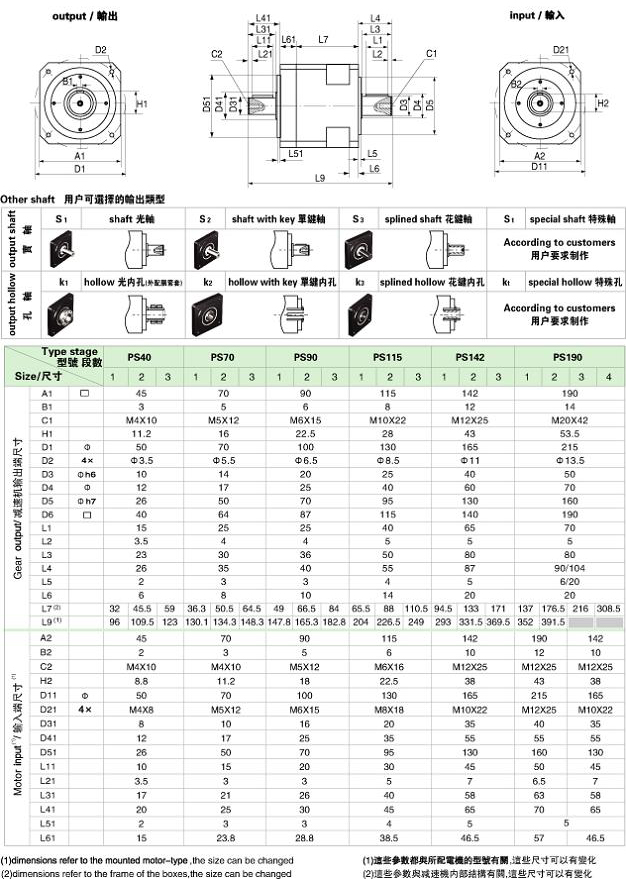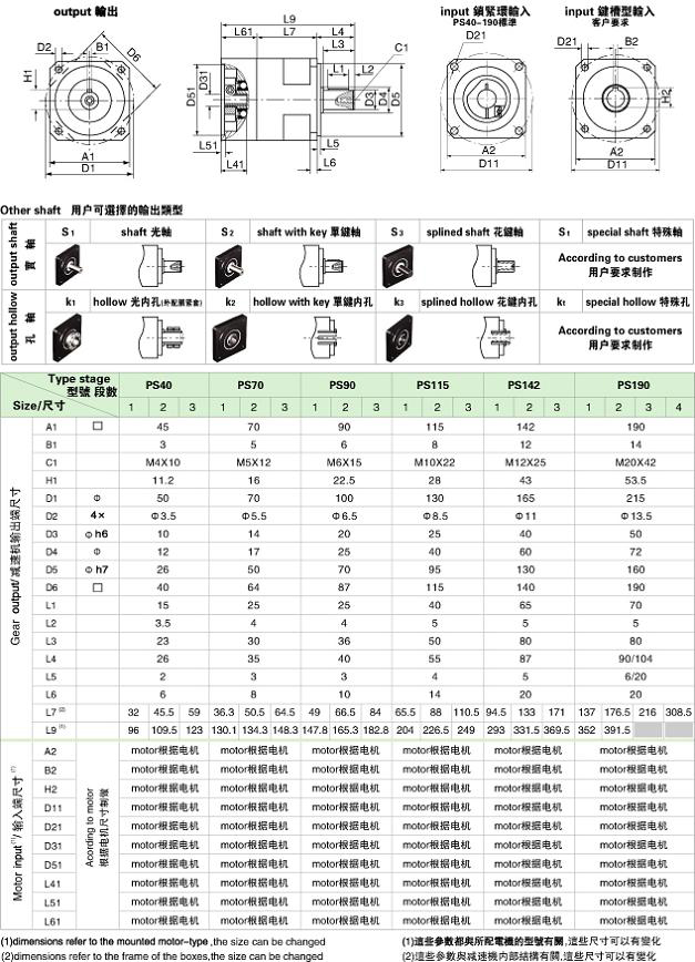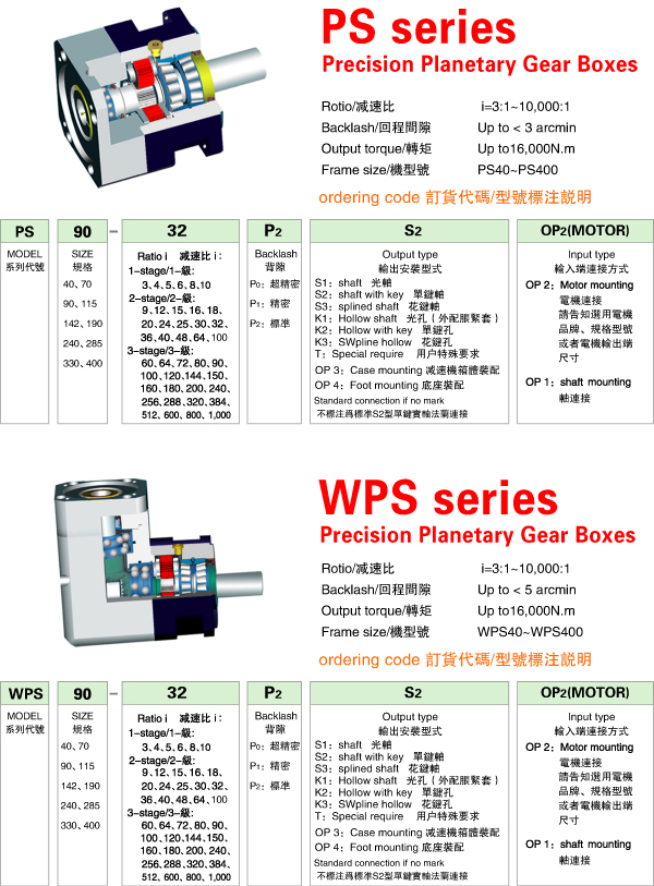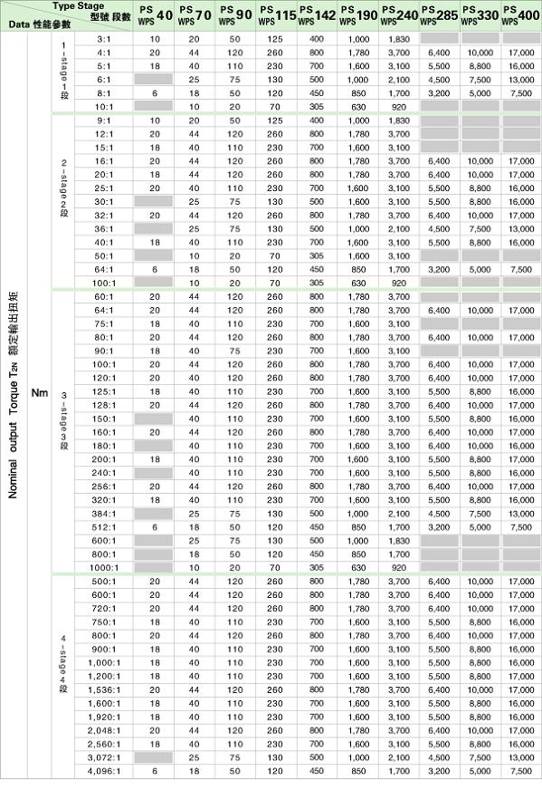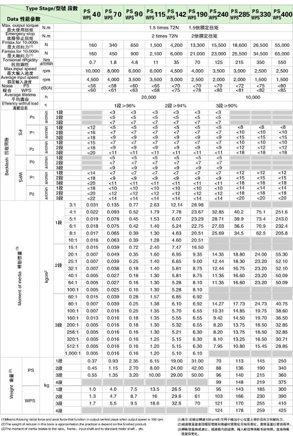 PS/WPS 系列精密行星減速機(jī)技術(shù)參數(shù)