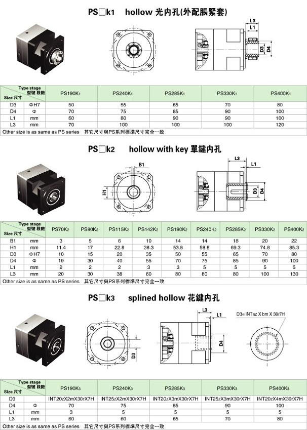 PS□K空心孔輸出外形尺寸