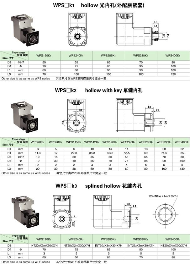 WPS□K空心孔輸出外形尺寸